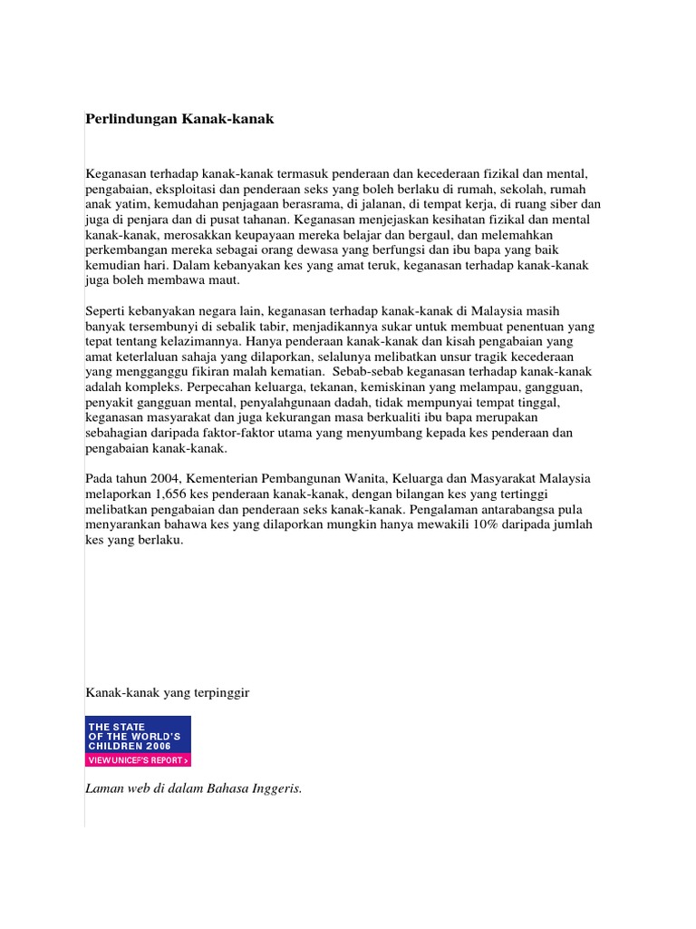 Pencabulan Kanak Kanak from imgv2-2-f.scribdassets.com Akibat penderaan ini ia akan mendatangkan masalah terutama dalam aspek pembangunan emosi dan interaksi antara satu sama lain. Ann wann seng atau nama islamnya ann abdullah merupakan rakyat malaysia keturunan cina yang aktif dalam ngo dan memberi ucapan dalam pentas politik serta menulis buku. Perilaku pendera meyakinkan perkara ini berulang sekiranya tiada. Isu penderaan kanak kanak merupakan situasi di mana seorang anak kecil diperlakukan secara tidak wajar seterusnya mengganggu perkembangannya dalam keadaan sihat dan bermaruah selain boleh menyebabkan risiko untuk meneruskan kehidupan. Lantaran ketakutan dan ketandusan alternatif, pembantu rumah dari seberang yang hamil di luar nikah itu telah. Apa tindakan yang telah diambil kerajaan? Pengarah bahagian pembangunan kesihatan keluarga, kementerian kesihatan. Awani xtra episod 32 :